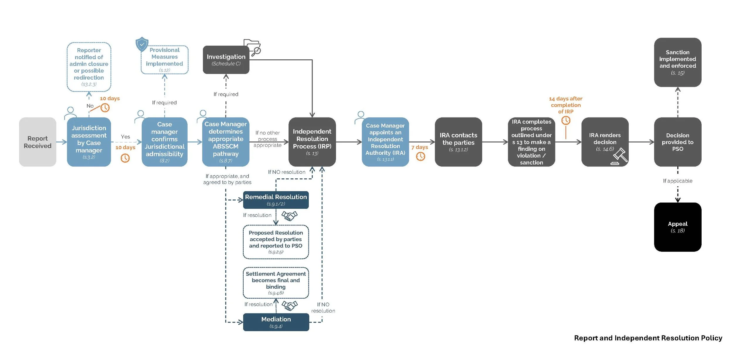 4) In-scope (AB UCC) → independent process (informal or formal). Out-of-scope → redirected to the correct PSO/club policy.